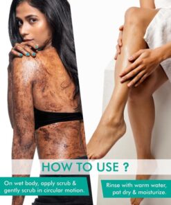 - Sestavine: Bio kava v prahu, sol Mrtvega morja, olivno olje, olje sladkega mandlja, olje iz semen arabike, kokosovo olje, organsko karitejevo maslo, ekstrakt kakava, kavna zrna arabika