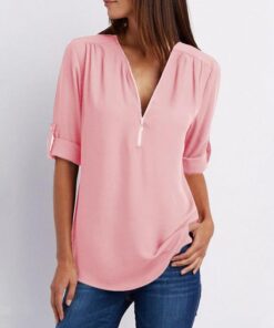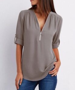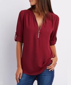 Enobarvne enobarvne bluze z zadrgo v izrezu imajo naslednje lastnosti izdelka: