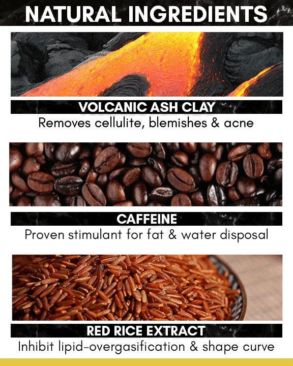 - Sestavine: vulkanska glina, kofein, glicerin, oljčno olje